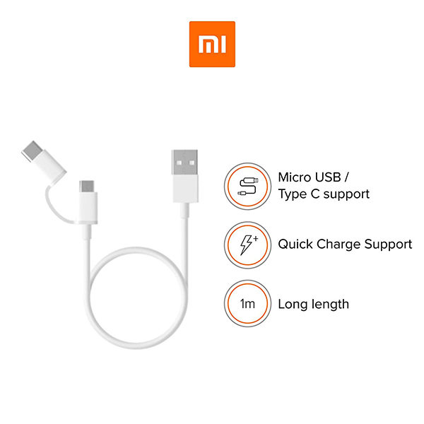 El Xiaomi Mi Cable 2 en 1 viene con un diseño más conveniente que otros en el mercado, ya que cuenta con 3 interfaces para una mayor utilidad. Este cable USB incluye un puerto Micro USB principal en un lado, junto con un convertidor USB Tipo C (de ahí el nombre “2 en 1”) que tiene la apariencia de una tapa. Su diseño compacto se adapta a la mayoría de los casos y, gracias a su longitud de 100 cm, es lo suficientemente largo para satisfacer las necesidades del usuario. Viene en blanco y tiene una amplia compatibilidad con dispositivos digitales . Permite la transferencia simultánea de datos de alto rendimiento y cables de alimentación que garantizan una velocidad de transferencia de datos de hasta 480Mbps . En su interior, varios cables trabajan juntos para proporcionar una recarga segura y más rápida . Se ha adoptado la última tecnología de conexión instantánea para mejorar la capacidad, para que pueda conectarse y cargar rápidamente. El conector reversible tipo C le permite conectar el cable a su dispositivo en cualquier dirección , eliminando la molestia de una inserción incorrecta.